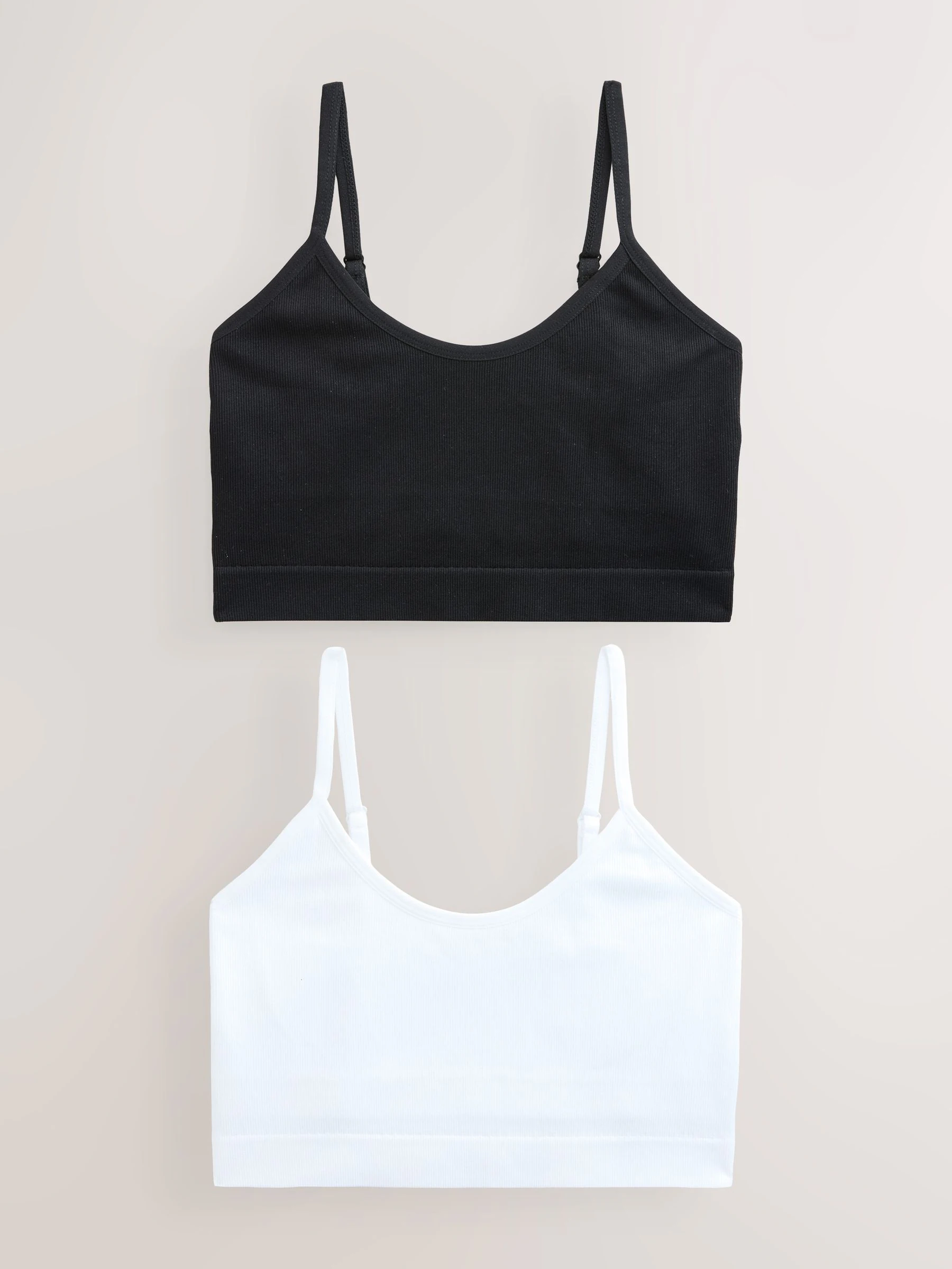 self. Black/White Seamless Rib Long Line Bralette 2 Pack