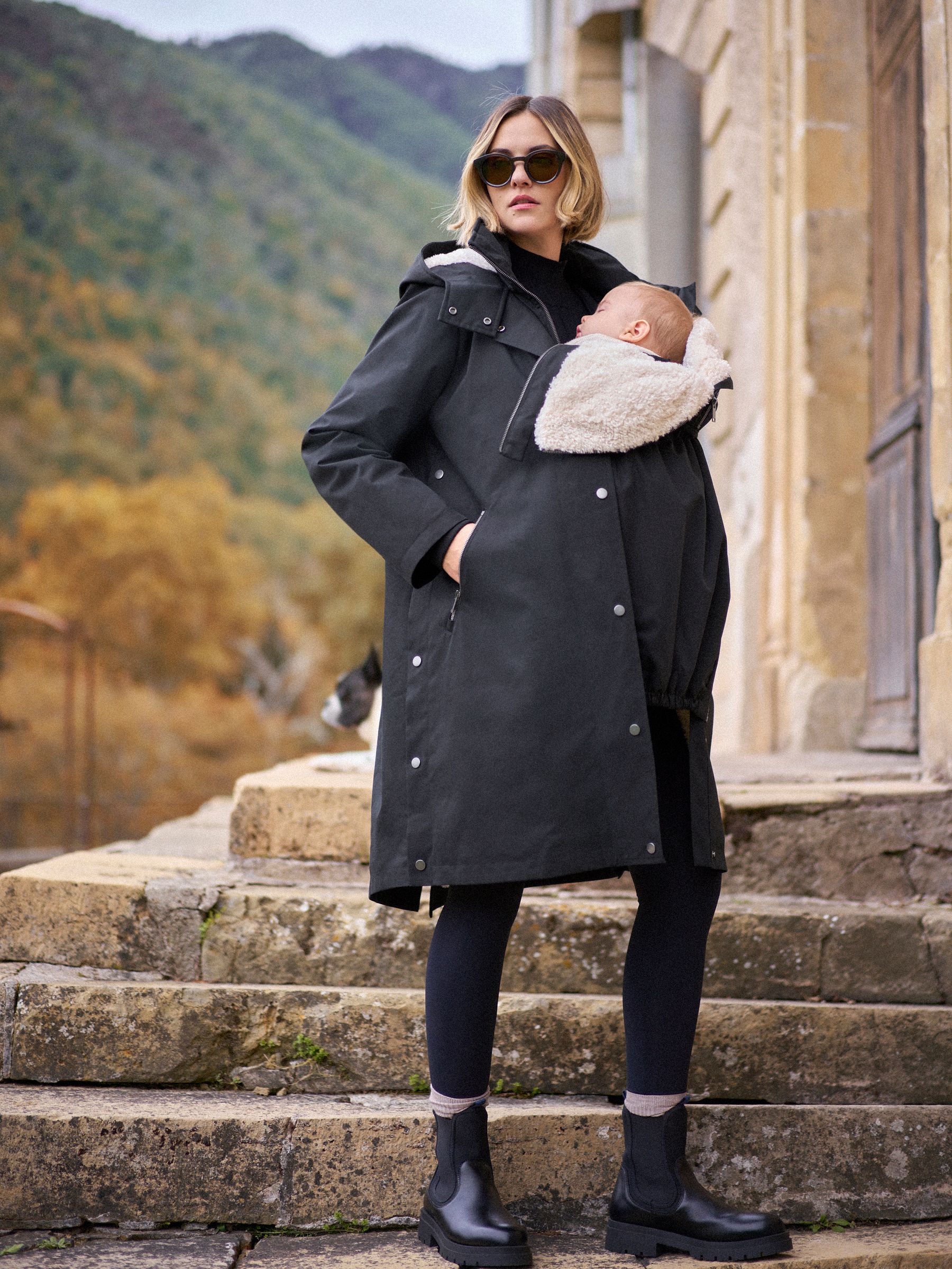 Seraphine Black 3 in 1 Maternity & Babywearing Parka with Borg Lining